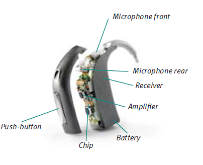 Today’s advanced hearing aids are small and enhance sounds so you can hear much better. While there are many different types and levels of powerful sound processing technologies, five basic components are common to them all: